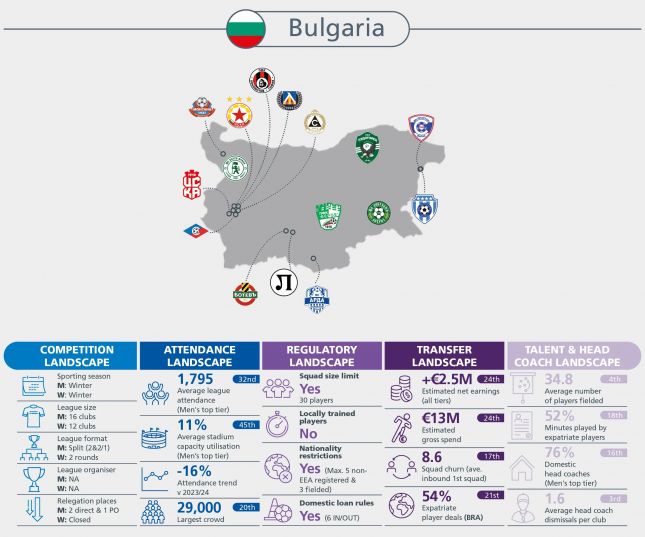 България заема 32-ро място в Европа по този показател. Зад нас остават първенствата на Азербайджан, Северна Ирландия, Албания, Грузия и Словения. Преди България са Сърбия (1 978 зрители средно), Беларус (2 105), както и Босна и Херцеговина, Словакия и Финландия.