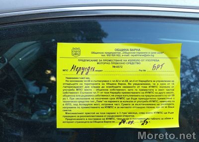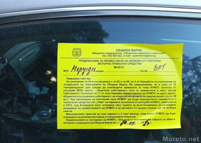 Собствениците на излезли от употреба автомобили имат срок от 14 дни, за да ги преместят от общинските терени, след като получат стикер с предупреждение, съгласно Наредбата за управление на отпадъците на територията на Община Варна.