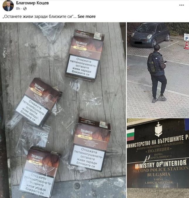 „В закона са формулирани 14 предупредителни надписа за рисковете от пушенето. Само един от тях съдържа тези думи - "останете живи". Тези 4 кутии пури са колкото сме ние, възрастните от семейството. Те са и колкото са децата в семейството. Пратката идва дни след известни събития и дни преди други, предстоящи важни събития. Може би затова и криминалният ум, който е сътворил това послание, е толкова изобретателен. Подозираме, че заплахата за живота ни не е нито случайна, нито се прави в случайно време. Ще осветяваме всяка заплаха и няма да спрем да се борим за Благо, дори да ни изпратят цял ТИР с пури.“, пише още в поста на страницата на Коцев.