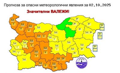 Националният институт по метеорология и хидрология обяви предупреждение за днес, 2 октомври, за значителни валежи в страната. Най-засегнати ще бъдат централните и южните области на България, където се очакват обилни дъждове.