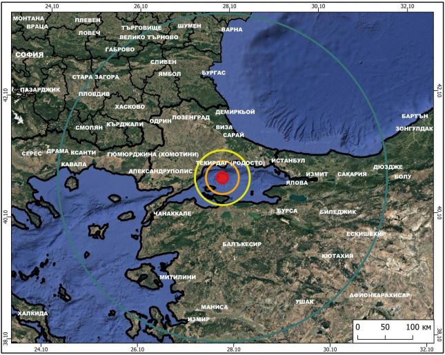 Земетресение с магнитуд 5.1 е регистрирано днес следобед в района на Мраморно море, Турция.
