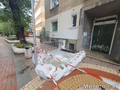 Огромна дупка зейна пред жилищен вход на ул. „Михаил Колони“ в центъра на Варна, видя репортер на Moreto.net.