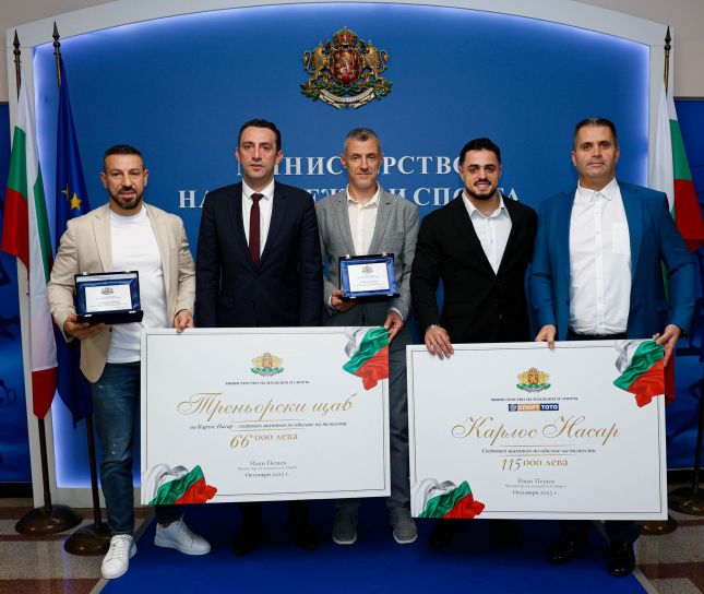 Той поздрави екипа на Насар и връчи почетни плакети на треньорите Павел Христов, Милко Георгиев, както и на масажиста Атанас Литков. Треньорският щаб на световния шампион ще бъде награден с парична премия в размер на 66 000 лв.