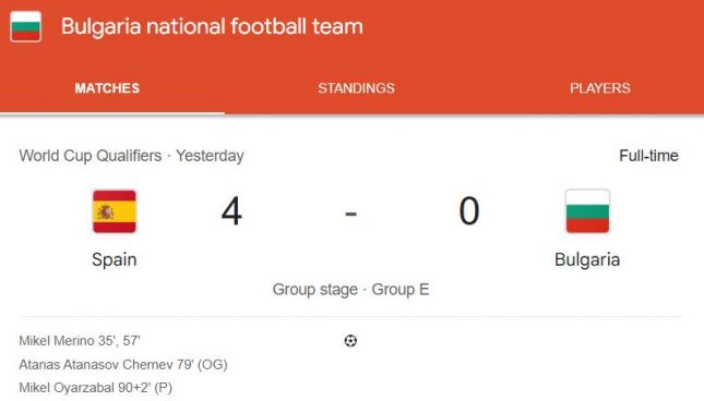 България без точки и с ново тежко поражение – 0:4 от Испания във Валядолид
