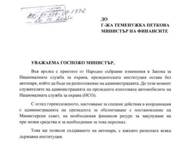 ДПС поиска да се осигурят средства за закупуване на автомобили за президенството