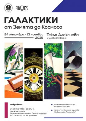 Регионална библиотека „Пенчо Славейков“ – Варна представя изложбата „Галактики: от Земята до Космоса“, посветена на творчеството на Текла Алексиева – една от най-разпознаваемите илюстраторки в българското изкуство, оставила ярка следа в оформлението на художествената и учебната литература у нас.