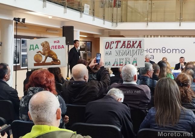 "Работим и с местните власти да предупреждават хората, когато има наше присъствие, тогава да отиват да обменят парите си, за да е ясно, че на места е осигурена охрана", коментира още министърът на вътрешните работи. На срещата в Юнашкия салон присъстваха и група привърженици на "Възраждане", които са срещу въвеждането на еврото. Те изразиха с викове недоволството си срещу присъстващите официални гости.