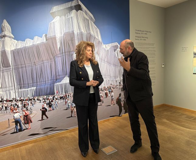 Вицепрезидентът Илияна Йотова откри в Националната галерия („Квадрат 500“) мащабната изложба „Кристо и Жан-Клод. Опакованият Райхстаг, Берлин (1971 – 1995)“. Експозицията, която се представя за първи път...