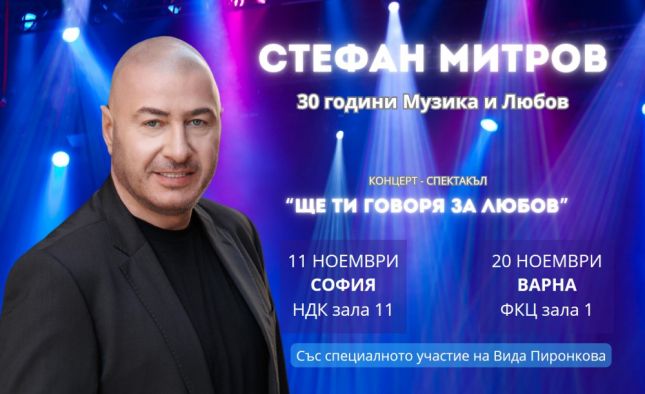 На 20 ноември 2025 г., в зала 1 на ФКЦ от 19:00 ч., Стефан Митров ще отбележи 30 години от началото на своята музикална кариера с концерт-спектакъл „Ще ти говоря за любов“. Един от най-романтичните гласове в българската популярна музика ще представи най-обичаните си песни, оставили трайна следа в сърцата на поколения почитатели, както и няколко нови композиции.