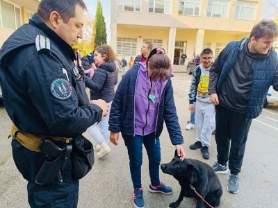 Емоционалният момент настъпи с появата на полицейското куче, което веднага спечели сърцата на децата. Те разгледаха питомника, погалиха животното и се снимаха с него, превръщайки срещата в незабравимо преживяване.