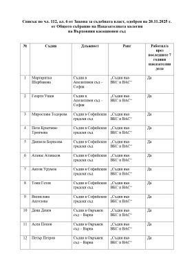 С писъка има съдии от Софийския апелативен съд, Софийския градски съд и Окръжния съд във Варна.