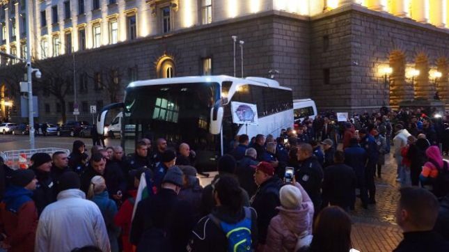 Протестиращи блокираха "Триъгълника на властта", опитаха да избутат автобус с полицаи