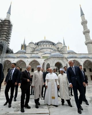 Папа Лъв XIV посети Синята джамия в Истанбул в събота, като събу обувките си в знак на уважение към мястото и вярата на мюсюлманите, но не се включи в молитва. Това бе първото посещение на папата в мюсюлманско място за поклонение като лидер на Католическата църква, отбелязват световните агенции.