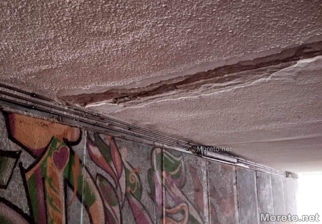 Опасният участък стои неразчистен и по никакъв начин достъпът до него не е ограничен. Мазилката изглежда така сякаш има вероятност да паднат още парчета.