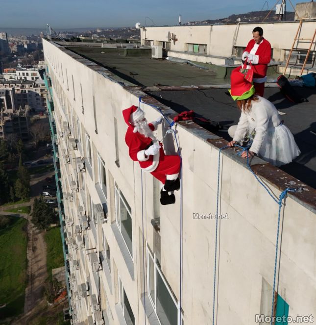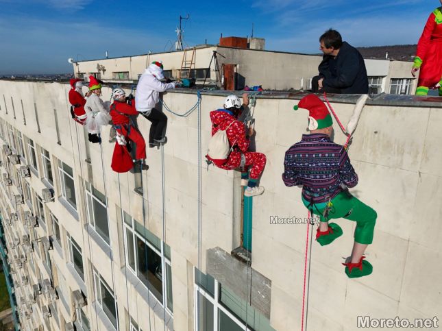Подаръци през прозореца: Дядо Коледа се спусна от покрива на болница във Варна (снимки)