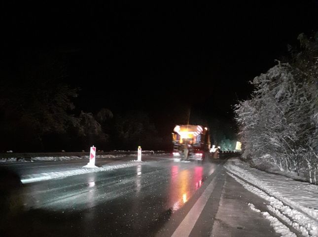377 снегопочистващи машини обработват републиканските пътища. Слаб сняг вали в Северна България, като по-интензивен е в областите Враца, Видин и Монтана, както и по Старопланинските проходи.