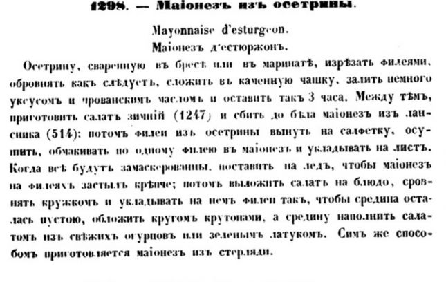 В книгата Практически основи на кулинарното изкуство на Пелагея Александрова-Игнатьева салата Оливие съдържа: