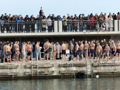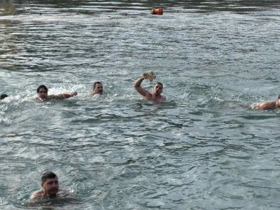 В надпреварата за кръста се включиха множество смелчаци, които въпреки студеното време и ниската температура на водата, се хвърлиха в морето.