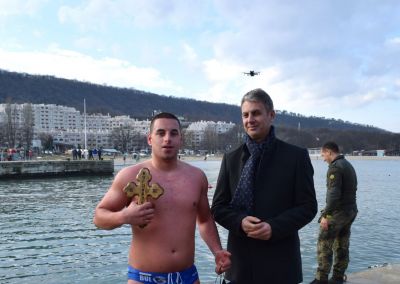 19-годишният студент от Бургас Иван Кошничаров извади богоявленския кръст от морските води край варненския район „Аспарухово“ по време на традиционния празничен ритуал за Йордановден.