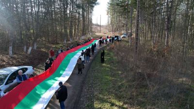 Разпънаха 100-метрово българско знаме на брега на язовир във Варненско (снимки)