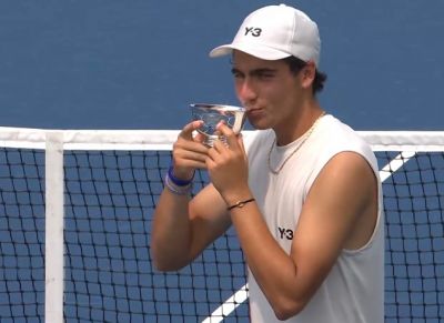 17-годишният българин, който е водач в световната ранглиста при юношите, стартира силно двубоя и поведе с 3:0, след което удържа аванса си до края на първия сет. Във втората част той пропиля ранен пробив аванс, но след това направи серия от четири поредни гейма, за да стигне до крайния успех.