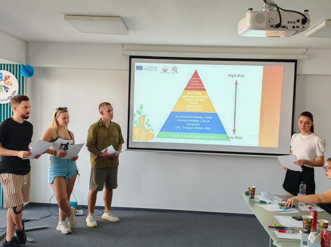 Втората част от обучението се проведе в Крайова, Румъния, където фокусът беше върху спестявания, застраховки, инвестиции и заеми. Младежките работници имаха възможност да се срещнат с финансови експерти и да надникнат „отвътре“ в работата на банковия сектор – включително по време на посещение в офис на BCR (Banca Comercială Română).
