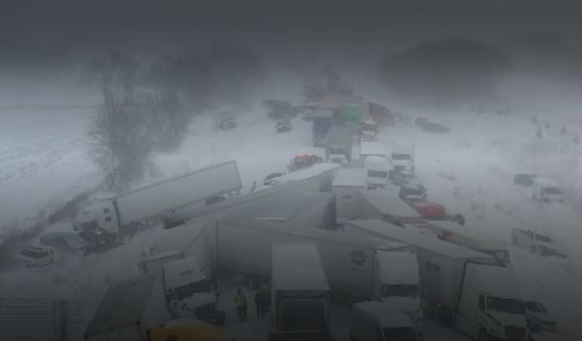 Над 100 превозни средства се сблъскаха или излязоха от пътя в понеделник на междущатска магистрала 196 в Мичиган, САЩ, заради силен снеговалеж.