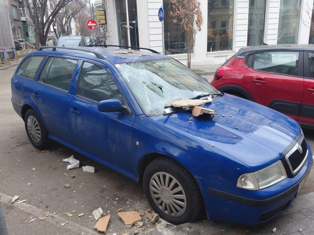 Парче от балкона на къщата на Иван Драсов падна и удари кола във Варна (снимки)