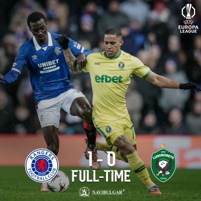 Лудогорец загуби с 0:1 при гостуването си на Глазгоу Рейнджърс на стадион „Айброкс“ в мач от седмия кръг на Лига Европа.