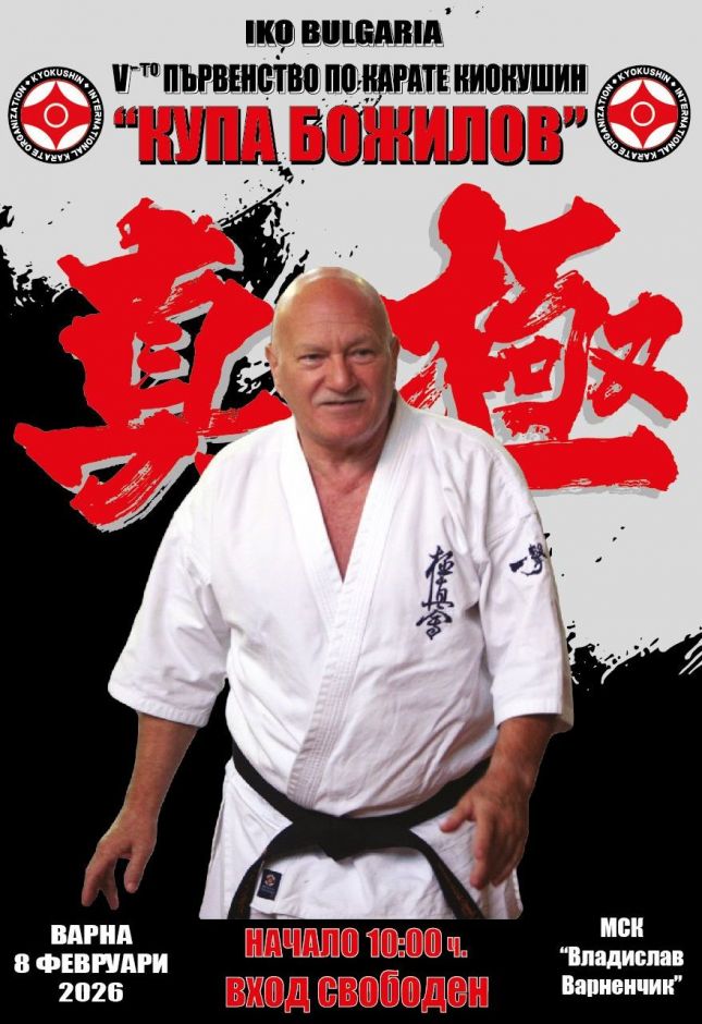 Петото издание на първенството по карате киокушин за всички възрасти за „Купа Божилов“ 2026 ще се проведе на 8 февруари (неделя) в спортната зала на МСК „Владислав Варненчик“ във Варна. Състезанието...