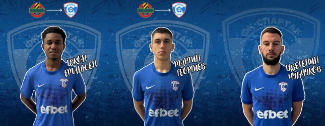 Варненският Спартак продължава активната си селекция, като представи още трима нови футболисти, които ще подсилят отбора. Към „соколите“ се присъединяват защитниците Джон Еманюел и Мартин Георгиев, а ден по-рано клубът обяви и привличането на нападателя Цветелин Чунчуков.