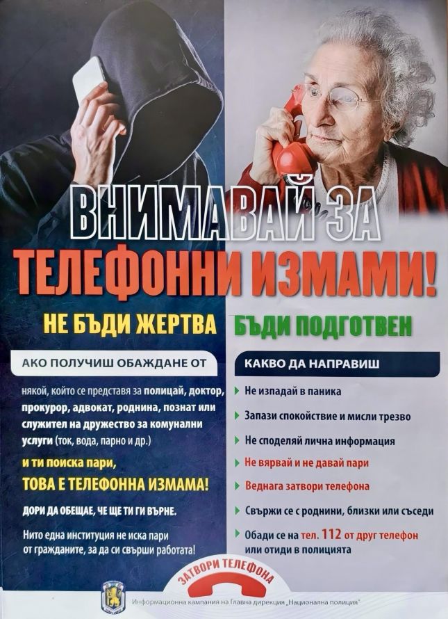 От МВР призовават хората да бъдат изключително внимателни и да не предоставят по телефона лична информация, банкови данни или парични средства, независимо от повода, под който се представят обаждащите се.