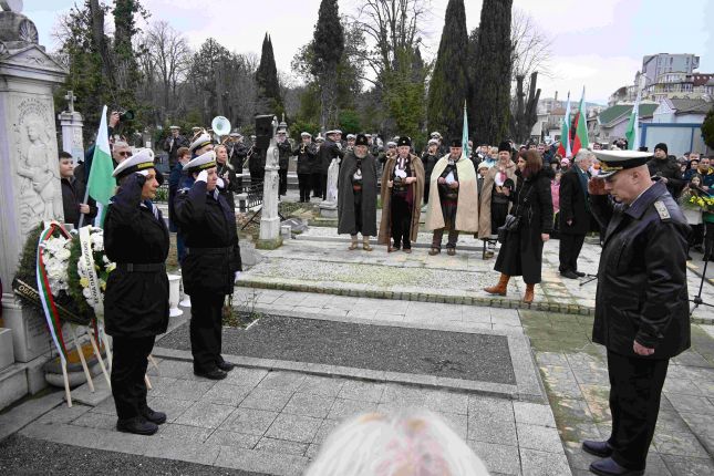Свещеници от Варненска и Великопреславска Света митрополия отслужиха заупокойна молитва, след което с военен ритуал на надгробния паметник бяха положени венци и цветя.