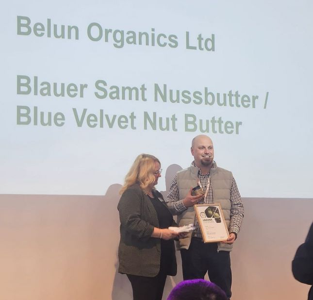 Българският бранд Белун спечели първа награда за „Най-добър нов продукт“ в категория „Други хранителни продукти“ на престижното изложение BIOFACH в Нюрнберг. Отличието бе присъдено за иновативния продукт „Био крем синьо кадифе“, представен на т.нар. Novelty щанд, където тази година бяха изложени над 280 нови и иновативни предложения от цял свят.