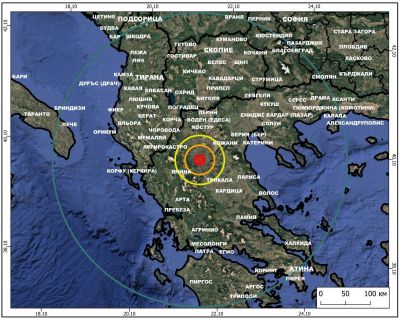 Епицентърът се намира на около 210 км от Петрич, на 260 км от Благоевград и на приблизително 340 км от София.