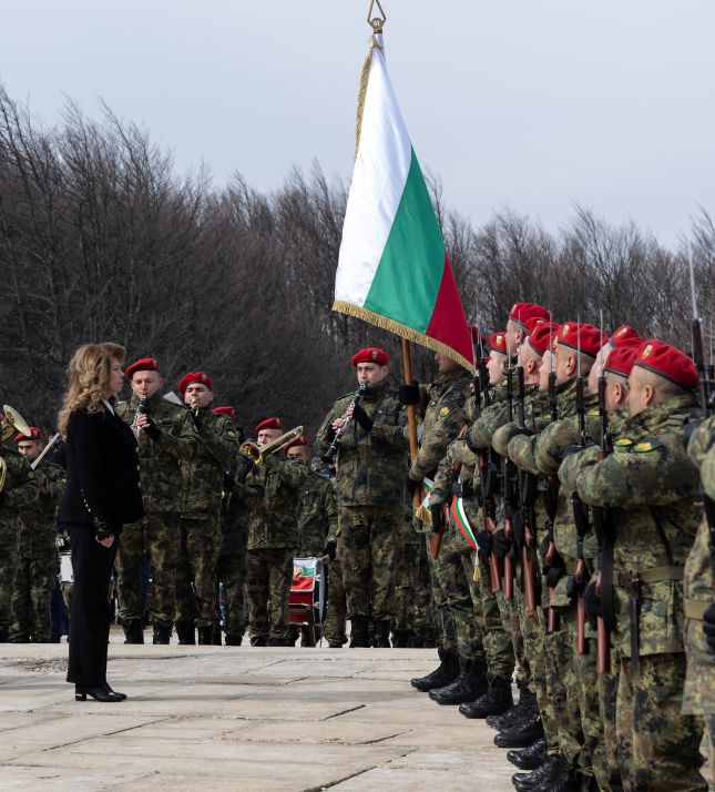 На връх Шипка президентът и върховен главнокомандващ на Въоръжените сили Илияна Йотова прие почетния строй на представителните части на Българската армия и отдаде почит пред Паметника на свободата.