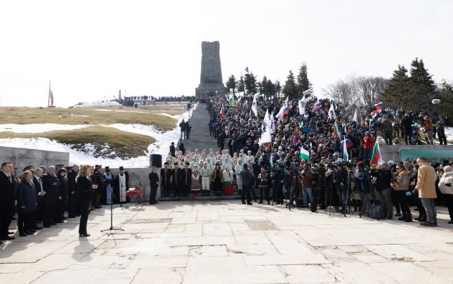 Шипка е място за чутовен подвиг и крепост на българската памет - тя е неподвластна на злободневие, разделение и омраза. Този връх и Орлово гнездо сложиха печата на историята върху съдбата на целия ни народ и на всеки един от нас. Това заяви държавният глава Илияна Йотова в словото си на връх Шипка, където стотици българи се събраха да отдадат почит пред паметта и героизма на опълченците и воините, загинали за свободата на България.
