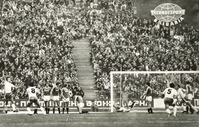 Голът на Румен Димов (вляво) срещу „Манчестър Юнайтед“