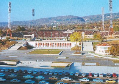 Изграждането се случва благодарение на хиляди работници от заводи и предприятия, положили безвъзмезден и доброволен труд. По план към стадиона е трябвало да има цял спортен комплекс, включващ футболен терен, волейболни и баскетболни игрища, площади за бокс и гимнастика, тенис кортове, стрелбища.