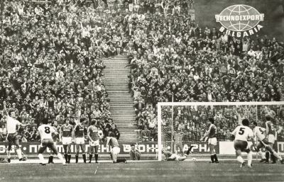 Над 35 000 зрители присъстват, а легендарният Боби Чарлтън наблюдава срещата от трибуните. Румен Димов бележи гол за варненци, но англичаните печелят с 2:1.