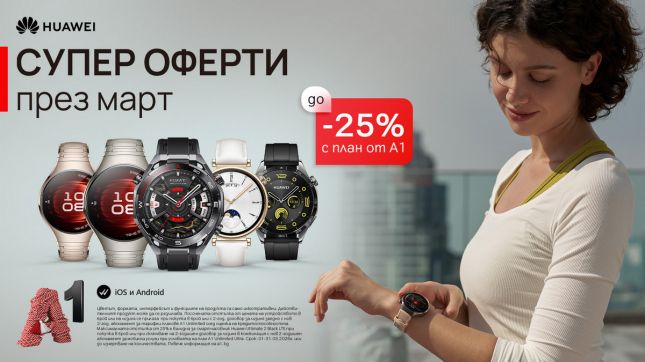 Март носи повече светлина и енергия за ново начало. През целия месец избрани смартчасовници и безжични слушалки Huawei са с до 25% отстъпка в А1. Те съчетават стилен дизайн и интелигентни функции, които се вписват естествено в динамичното ежедневие, като всички модели са съвместими както с Android, така и с iOS. Това е подходящ момент за избор на ново устройство – за повече движение, по-добра организация на деня и звук, който ви следва навсякъде.