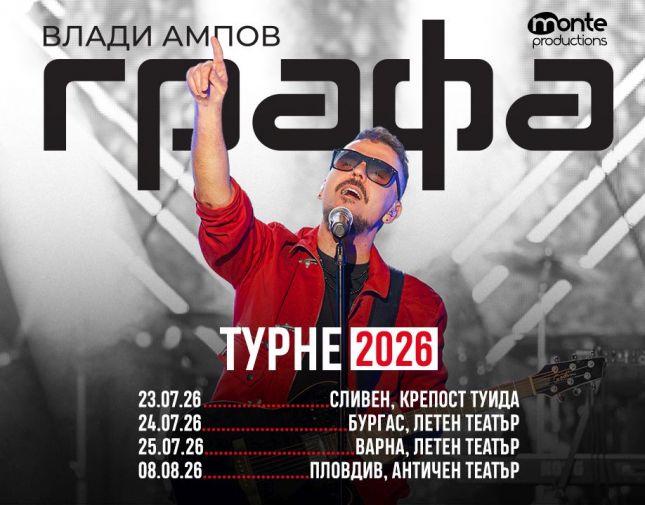Графа обяви датите за летните си концерти, които ще преминат през някои от най-красивите открити сцени в България. Турнето започва на 23 юли в крепост "Туида" в Сливен, продължава на 24 юли в Летен театър - Бургас и на 25 юли в Летен театър - Варна, а финалът е на 8 август на сцената на Античен театър, Пловдив.