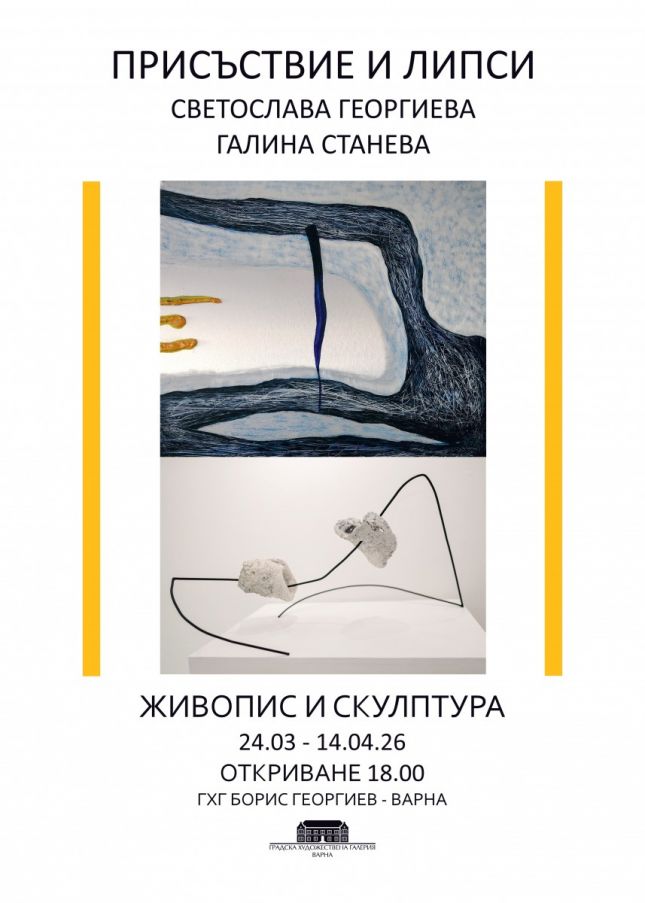 Изложбата „Присъствие и липси“ ще бъде открита днес,24 март, от 18:00 часа в Градска художествена галерия „Борис Георгиев“.