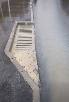 На кадрите се вижда как при дъжд водата се стича по пътя, без да влиза в дъждоприемните шахти в района на местност "Зеленика".