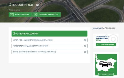 Националното тол управление разширява достъпа до данни от тол системата. Заедно с информацията в реално време за трафика и метеорологичната обстановка, се предоставя и достъп до данни от предходен период, както и до данни във формат, удобен за обработка. С това се създава възможност за по-задълбочени анализи и по-широкото им използване от гражданите.
