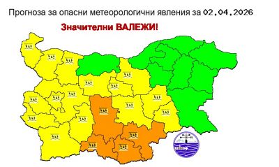 Заради очакваните обилни валежи в четвъртък е обявен жълт и оранжев код за голяма част от страната. Единствено за Източна България няма предупреждение.