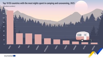 През изминалата година нощувките в къмпинги, кемпер паркове и зони за каравани са достигнали 413 милиона. Макар да представляват едва 13,4% от всички нощувки в туристически обекти, този сегмент отбелязва устойчив ръст.