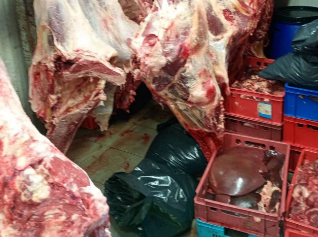 Инспекторите са открили близо 20 тона охладено и замразено месо без идентификация и придружаващи документи. В хладилна камера са намерени над 10 заклани говеда, а други пет агнета са били в процес на клане. Открита е и допълнителна камера със замразени говеда. Месото ще бъде унищожено в екарисаж.