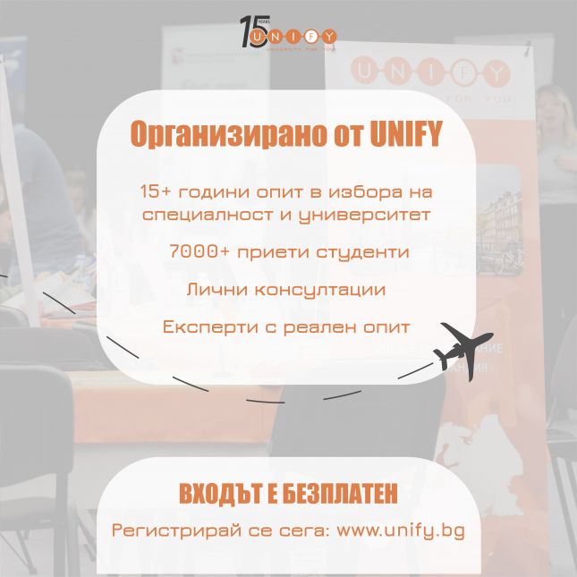 UniExpo се организира от Unify – образователна организация с над 15 години опит в консултирането на ученици за образование в чужбина.