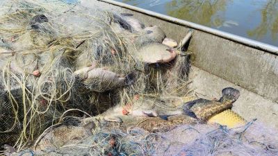 В мрежите е била уловена риба от видовете сребриста каракуда (200 кг), платика (100 кг), сом (5 кг) и шаран (25 кг).